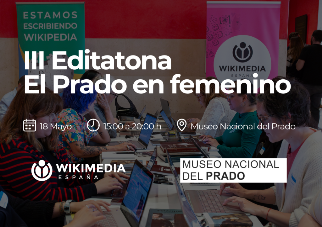 El Museo Nacional del Prado y Wikimedia España organizan la III Editatona El Prado en femenino. Una actividad colaborativa para mejorar y crear contenido sobre mujeres vinculadas a la historia del arte en Wikipedia, siendo su tercera edición.